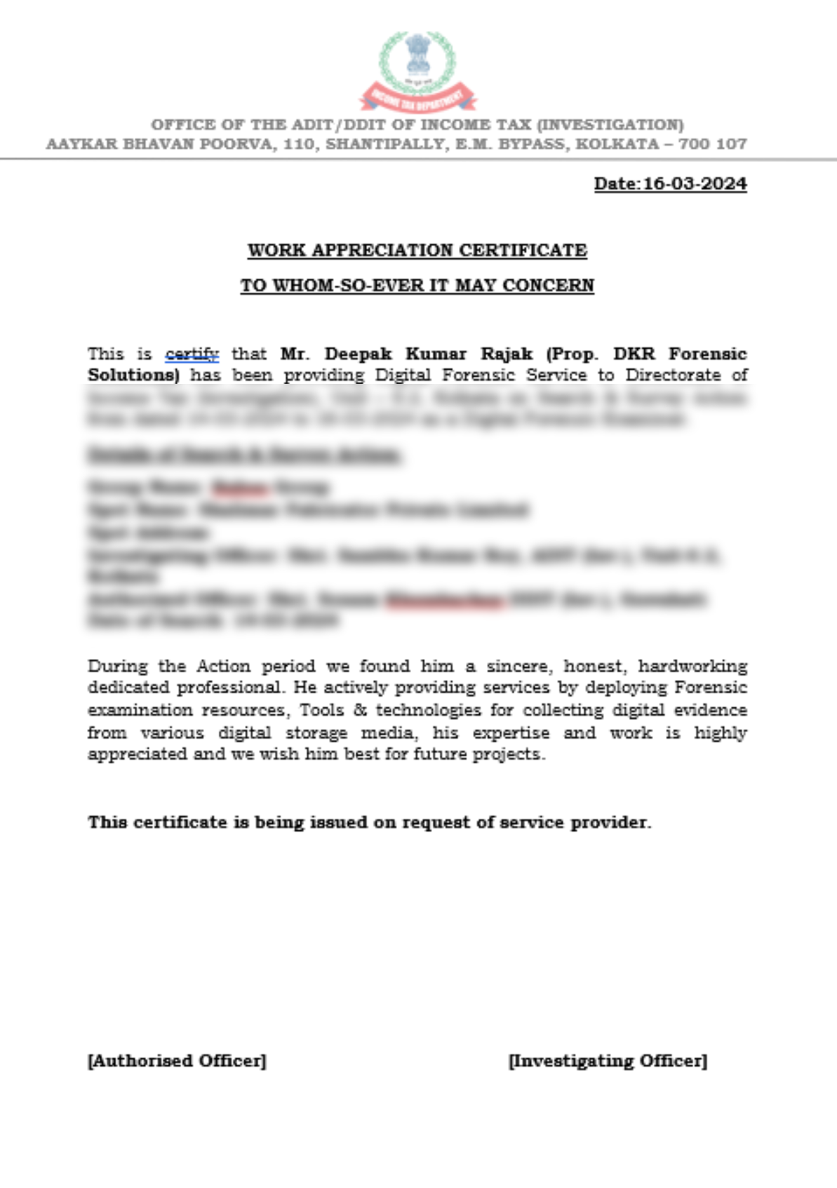 DKR Forensic Solutions, based in Kolkata, is committed to serving the government sector and private enterprises with unparalleled digital forensic services. With a vision to lead the service sector across India, we adhere to our core values of integrity, excellence, and dedication to uncovering the truth in every case we handle.